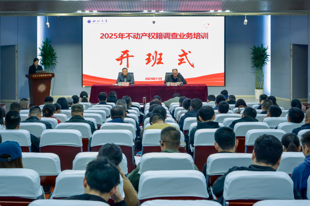 近日,由西安市不动产权籍调查中心主办、西北大学承办的2025年不动产权籍调查业务培训顺利举办。西安市不动产权籍调查中心主任曹峰、西北大学继续教育学院党支部(直属)书记叶培哲出席开班式。来自西安市各区县及市内各测绘机构的分管工作领导、业务骨干共150名学员参加。