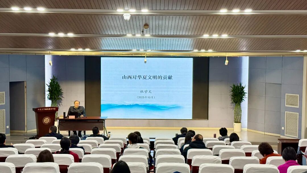 杜学文以山西在华夏文明谱系中的独特地位与贡献为主线,围绕“山西是华夏文明的主要发祥地之一”“山西在中华文明发展中的突出贡献”“华夏文明在山西地区未中断的原因”三方面展开讲授,系统梳理了山西作为华夏文明重要发祥地的历史脉络与现实意义。他通过对考古实证与文献记载的互证,从炎黄尧舜禹的都城遗址,到陶寺遗址中的文字、礼制与青铜器,再到北魏改革、晋国改制、丝茶商路等重要历史节点,以丰富详实的考古发现、历史文献与文化遗存为支撑,生动展现了山西在推动华夏文明连续性、包容性与创新性发展中的核心作用。他强调,山西地区在华夏文明的深厚历史积淀,不仅是理解中华文明“多元一体”格局形成的关键,也为今天坚定文化自信、构建中华民族现代文明提供了丰富的历史资源与精神动力。