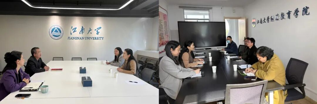 调研期间,孙二丽一行先后与江南大学人力资源处、继续教育学院、人文学院相关负责人进行座谈。江南大学人力资源处处长赵建新、副处长王宇灏,继续教育学院党总支书记张文、副院长惠恭建,人文学院校长教师培训中心主任魏建新分别参加座谈。座谈中,双方围绕体制机制改革、课程体系建设、师资队伍培养、校际合作模式以及国培省培项目等进行了交流探讨,分享了各自在办学实践中的思考体会与创新做法,为学院后续工作的推进提供了有益参考。