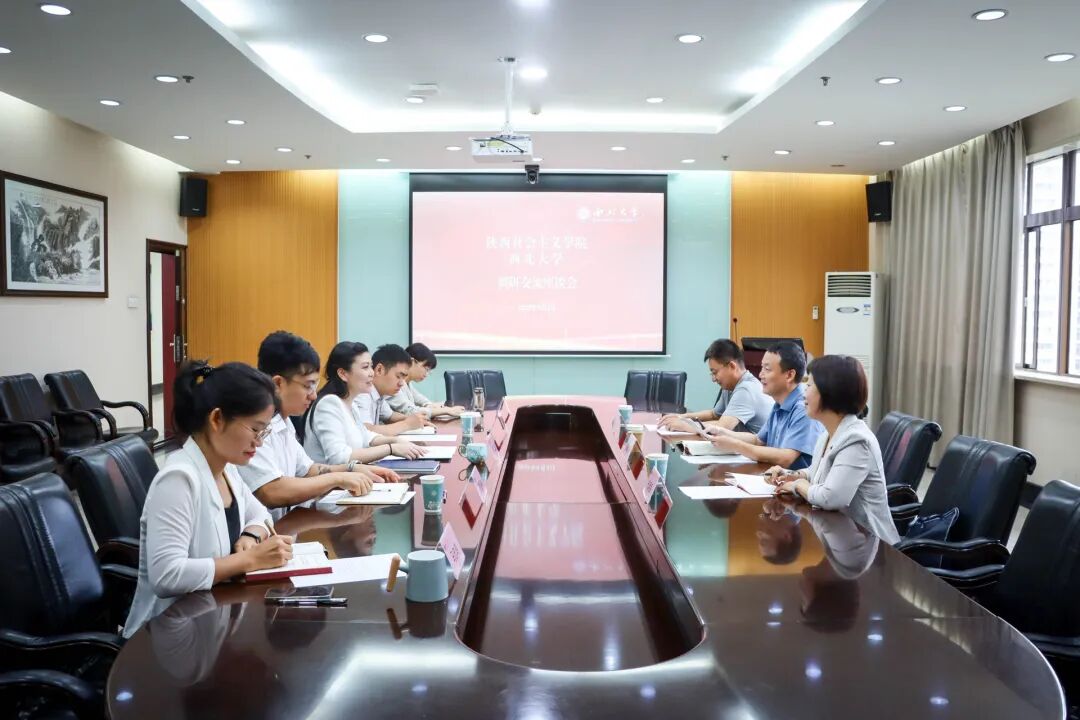 袁炜伟介绍陕西社会主义学院情况并阐明此次调研目的。他表示,陕西社会主义学院始终高度重视中华文化教育与对外交流工作,本次到访,旨在学习西北大学在培训项目设计、资源整合及教学管理方面的先进理念与成熟经验。他强调,学院将持续加大对双方共建教学基地的支持力度,并希望以此次调研为契机,进一步拓宽工作视野、创新工作机制、强化资源协同,积极探索契合新时代发展要求的工作路径与方法举措,全面推动各项工作提质增效,为双方今后更深层次的合作奠定坚实基础。